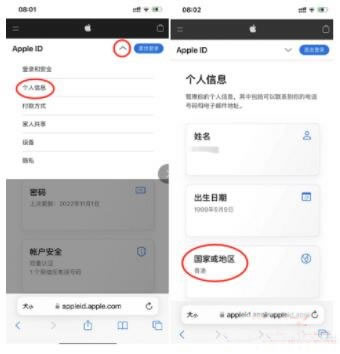2. 在退出登录旁边有个倒三角点开,个人信息里、地区修改为香港。