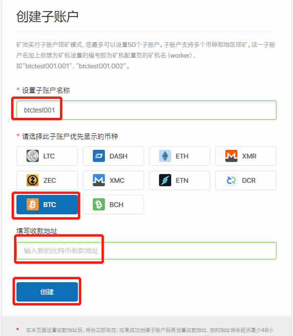 1. 首先登录币印矿池官网poolin.com,并创建比特币挖掘子账户,并填写收款地址。